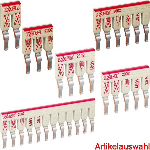 Schachtelbrücker 2-fach Nennstrom 25 A isoliert passend zu Reihenklemmen der Serien 2002 und 2003 lichtgrau