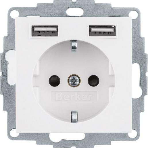Berker Steckdose SCHUKO/USB, S.1/B.3/B.7, polarweiß glänzend 48038989 S.1/B.X