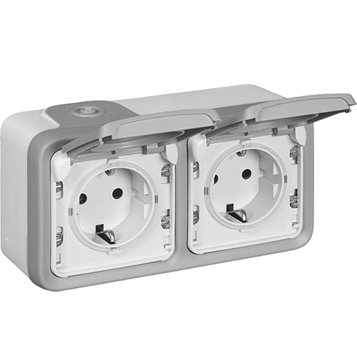 Legrand Steckdose (SL) 2-fach waagerecht IP44 Feuchtraum Aufputz Plexo 55 grau