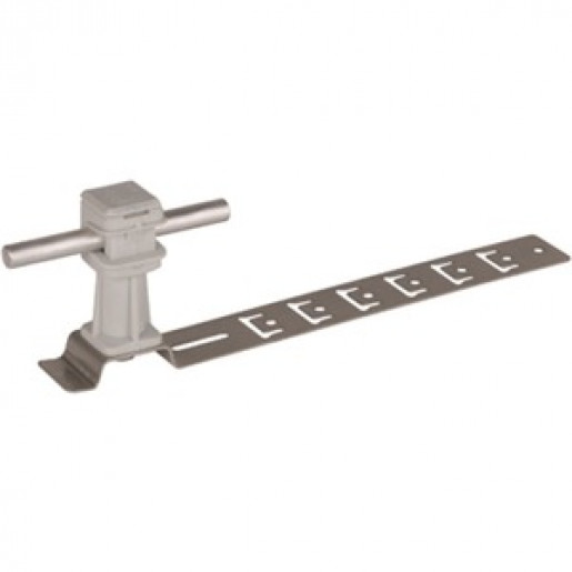 achleitungshalter mit geprägter Strebe für Dachflächen zur Befestigung von Fang- und Ableitungen. UNIsnap mit vorgeformten Biegestellen zum Abwinkeln und Einhängen in die Dachlattung, mit Leitungshalter DEHNsnap, lose Leitungsführung. Werkstoff DLH: NIRO Strebenlänge (l1): 335 mm Bauhöhe (h1): 16 mm Werkstoff LH: Kunststoff Farbe LH: grau LH Rd: 8 mm | ||