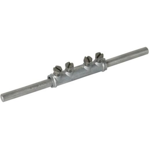 Verbindungsmuffe für den Zusammenschluss von zwei Rundleitern in längs Anordnung. Mit 4 Schrauben. Werkstoff Klemme: ZG Klemmbereich Rd: 7-10 mm Schraube: M6x12 mm Werkstoff Schraube/Mutter: NIRO Normenbezug: DIN EN 50164-1 | ||