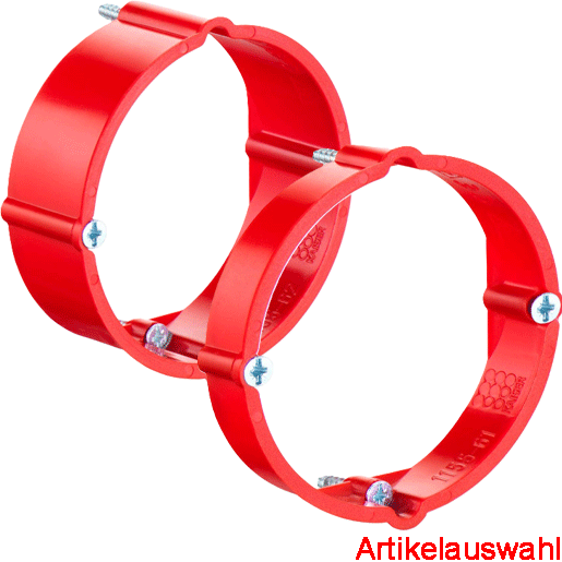 Putzausgleich-Ring, Schraubabstand 60 mm, für Gerätedosen Ø 60 mm, zum Ausgleich zu tief sitzender Dosen, mit 2 eingedrehten Geräteschrauben und 2 Ringbefestigungsschrauben.