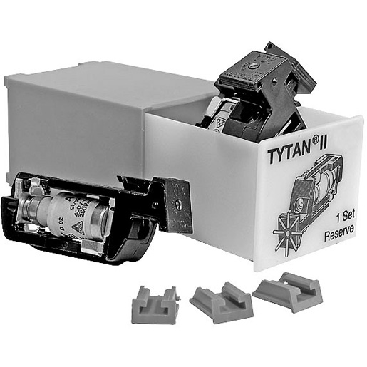 Sicherungs-Set mit Blinkeinsatz, Baugröße D01, Bemessungsstrom 16A, Farbcode rot, Betriebsklasse gG (gL), Bemessungsbetriebsspannung 60-400V AC / 60-220V DC, Prüfspannung 5kV, DIN-Schienenmontage, 1 Set besteht aus: 3 Sicherungs-Einsätzen, 3 Stromkodierungen, 1 Kunststoffbox in der Farbe der Kennmelder | |||